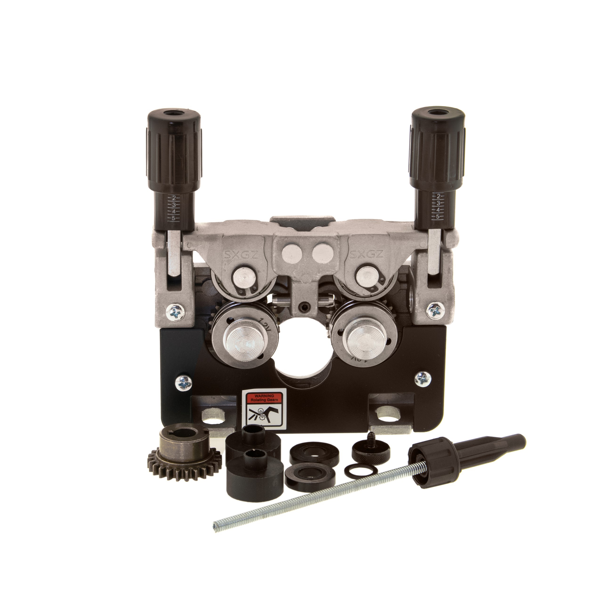 Podajnik wykonany jest z ciśnieniowo odlewanego aluminium co znaczenie wydłuża jego żywotność. Wyposażony jest w cztery rolki napędzane kołami zębatymi.