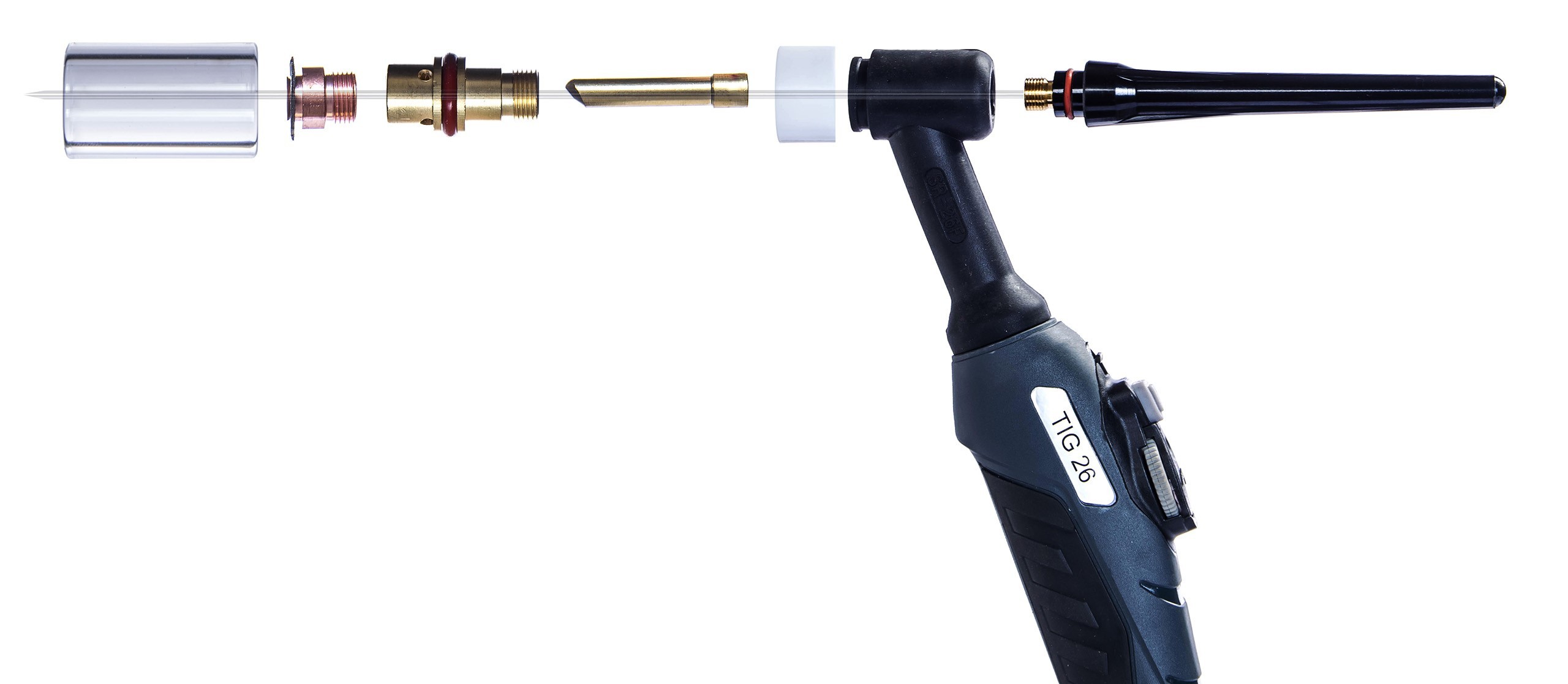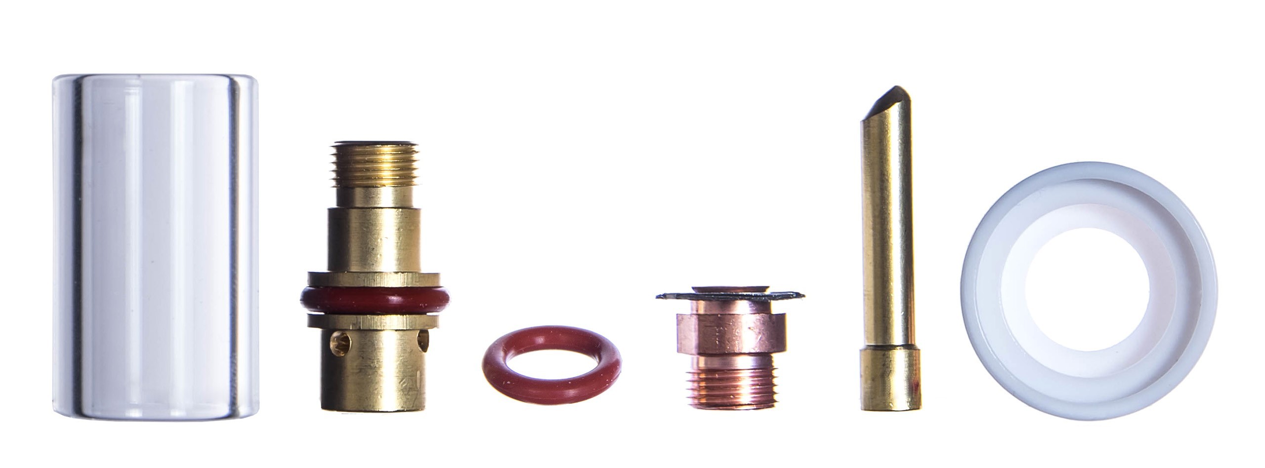 Zestaw ten pozwala na wysunięcie elektrody wolframowej do 6x średnicy elektrody poza krawędź dyszy gazowej.