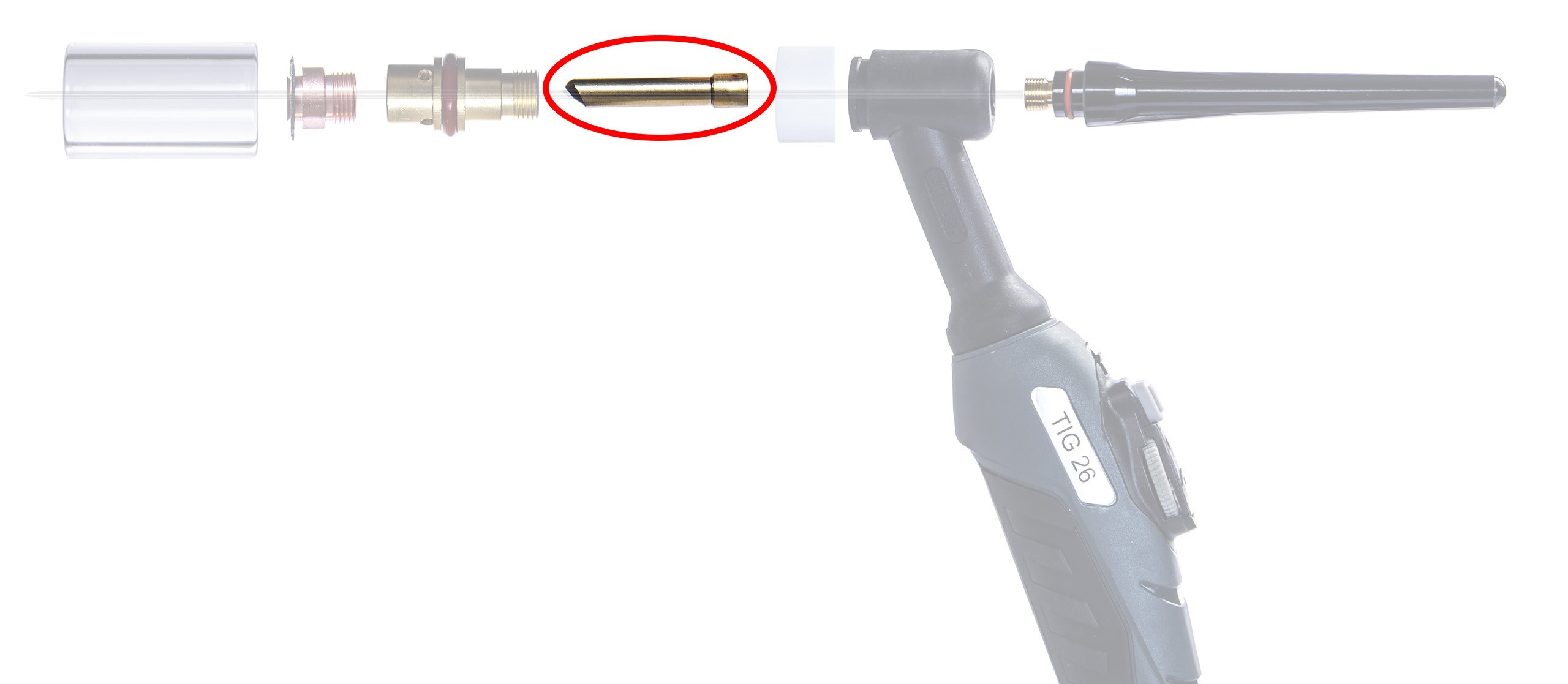 Tulejka zaciskająca elektrodę wolframową o średnicy 2.4 mm do uchwytów spawalniczych TIG. Kompatybilna z zestawem TIG QUARTZ 26 SC do palnika SR 17/18/26.