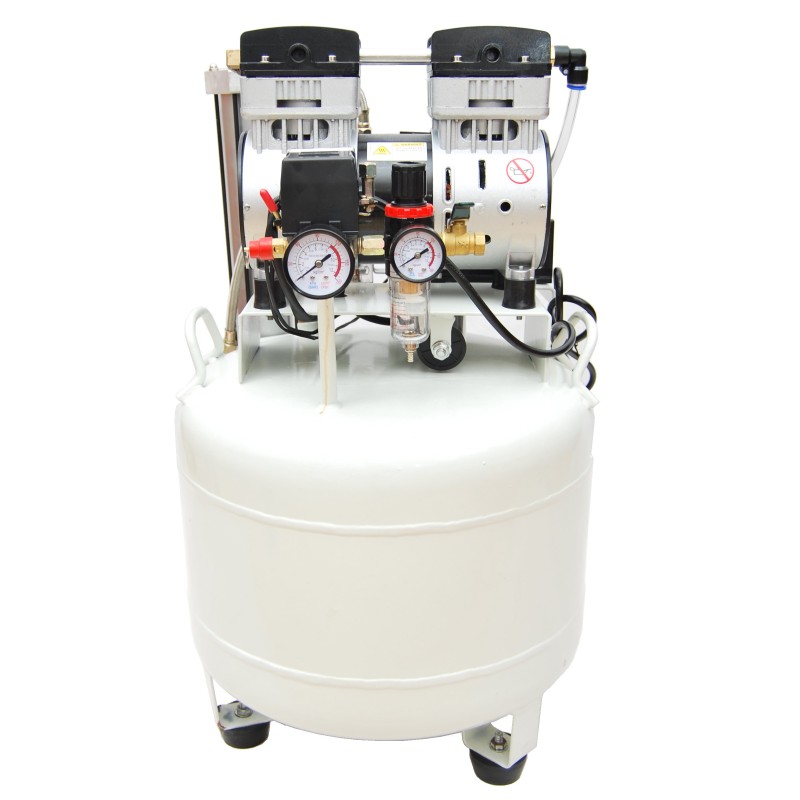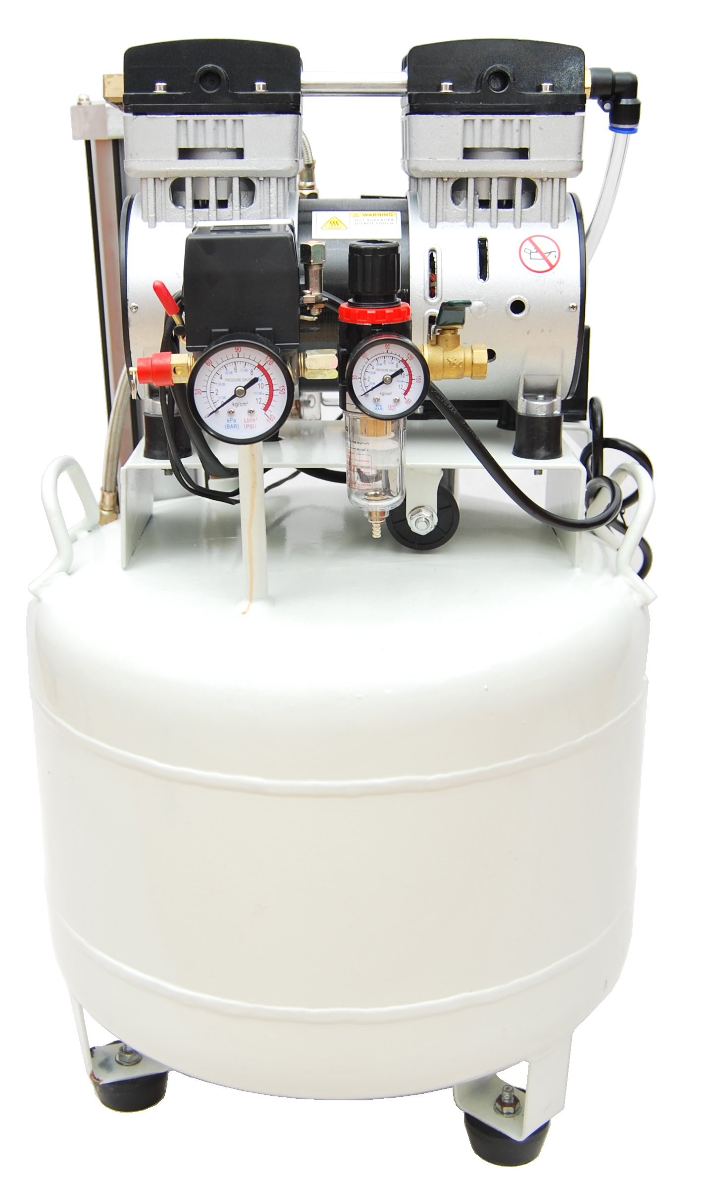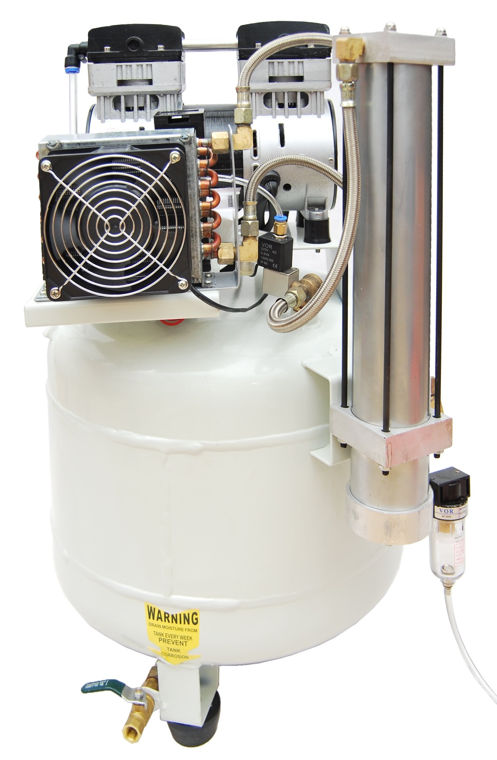 Profesjonalna bezolejowa tłokowa sprężarka z osuszaczem adsorbcyjnym. Przystosowana do pracy w laboratoriach, gabinetach medycznych, stomatologicznych i protetycznych. Niezastąpiona w miejscach w których wymagane jest źródło sprężonego, idealnie suchego i pozbawionego oleju powietrza. Bezolejowa pompa zastosowana w kompresorze jest niezwykle cicha i sprawna, a zastosowanie chłodnicy jeszcze bardziej poprawiło jej parametry. Kompaktowa konstrukcja ze zintegrowanym osuszaczem czynią z niej idealne rozwiązanie dla gabinetów z małą ilością miejsca, a niski poziom hałasu (55 dB) pozwala na montaż bezpośrednio przy stanowisku pracy. Przyjazna w obsłudze, łatwa w serwisowaniu.