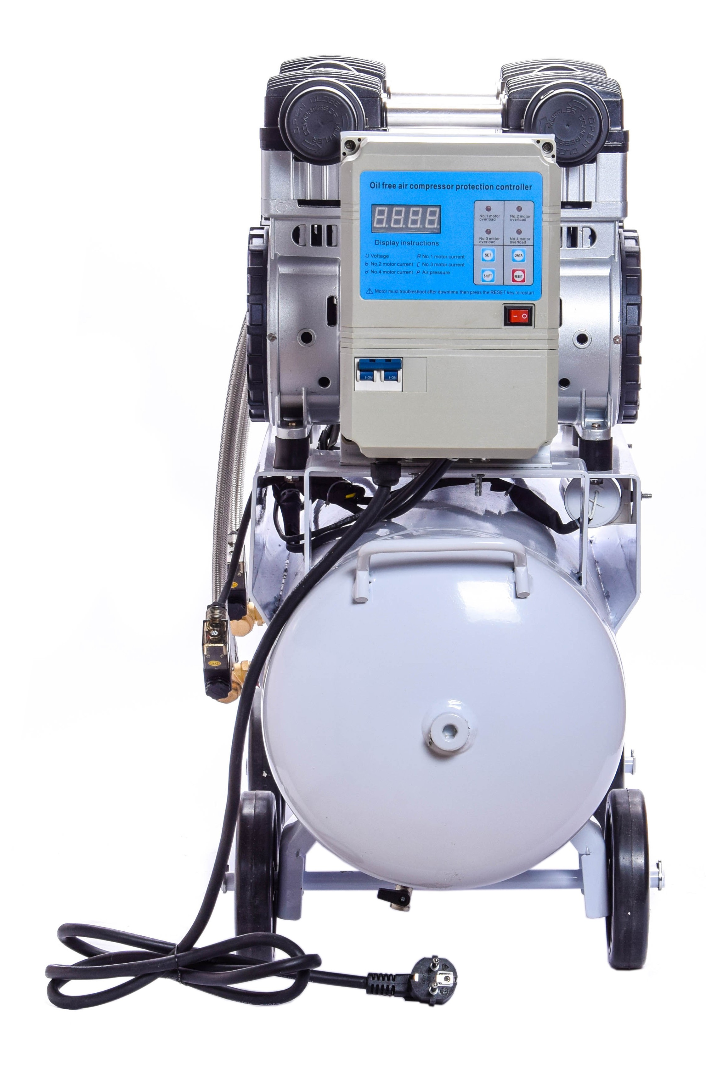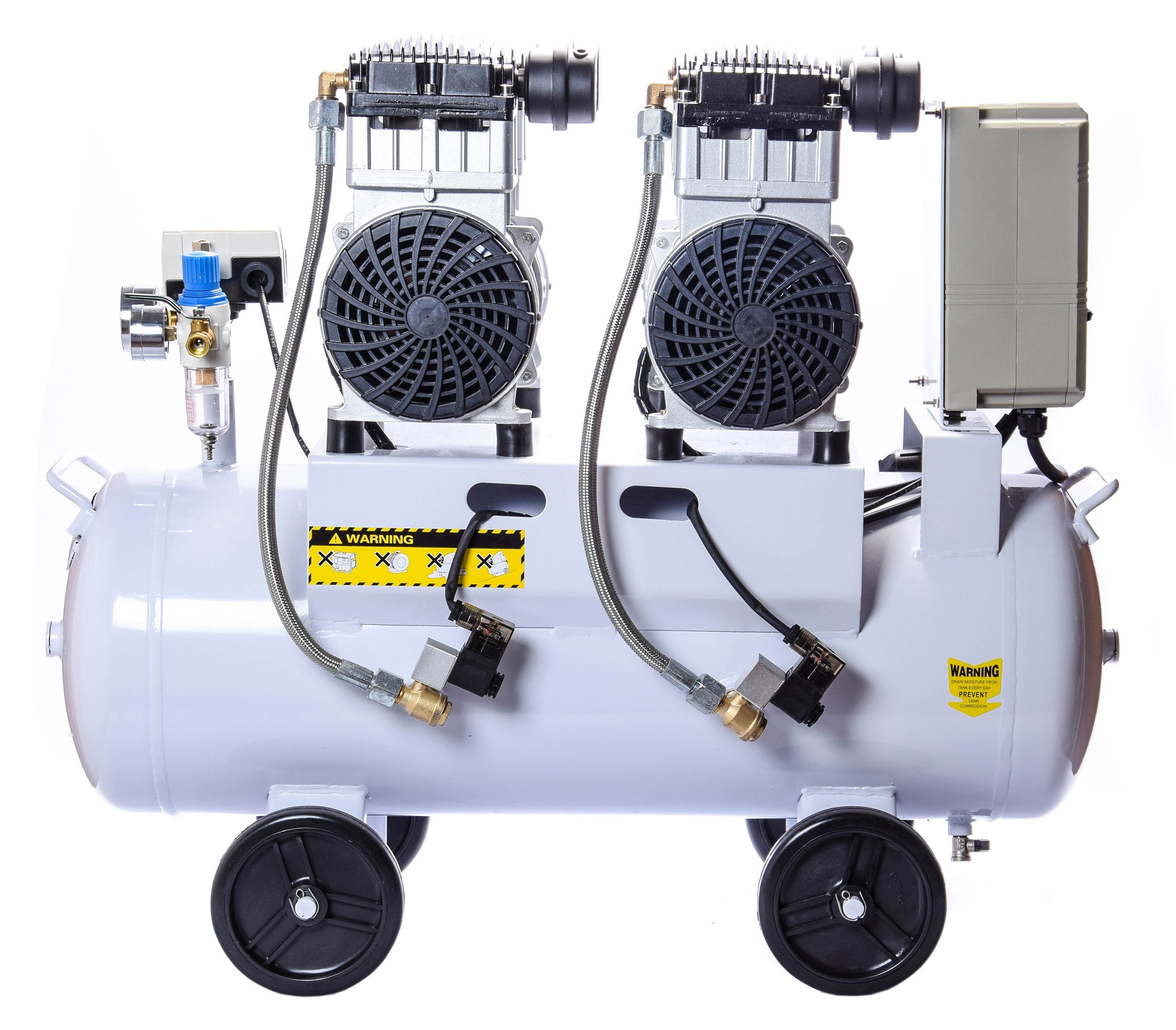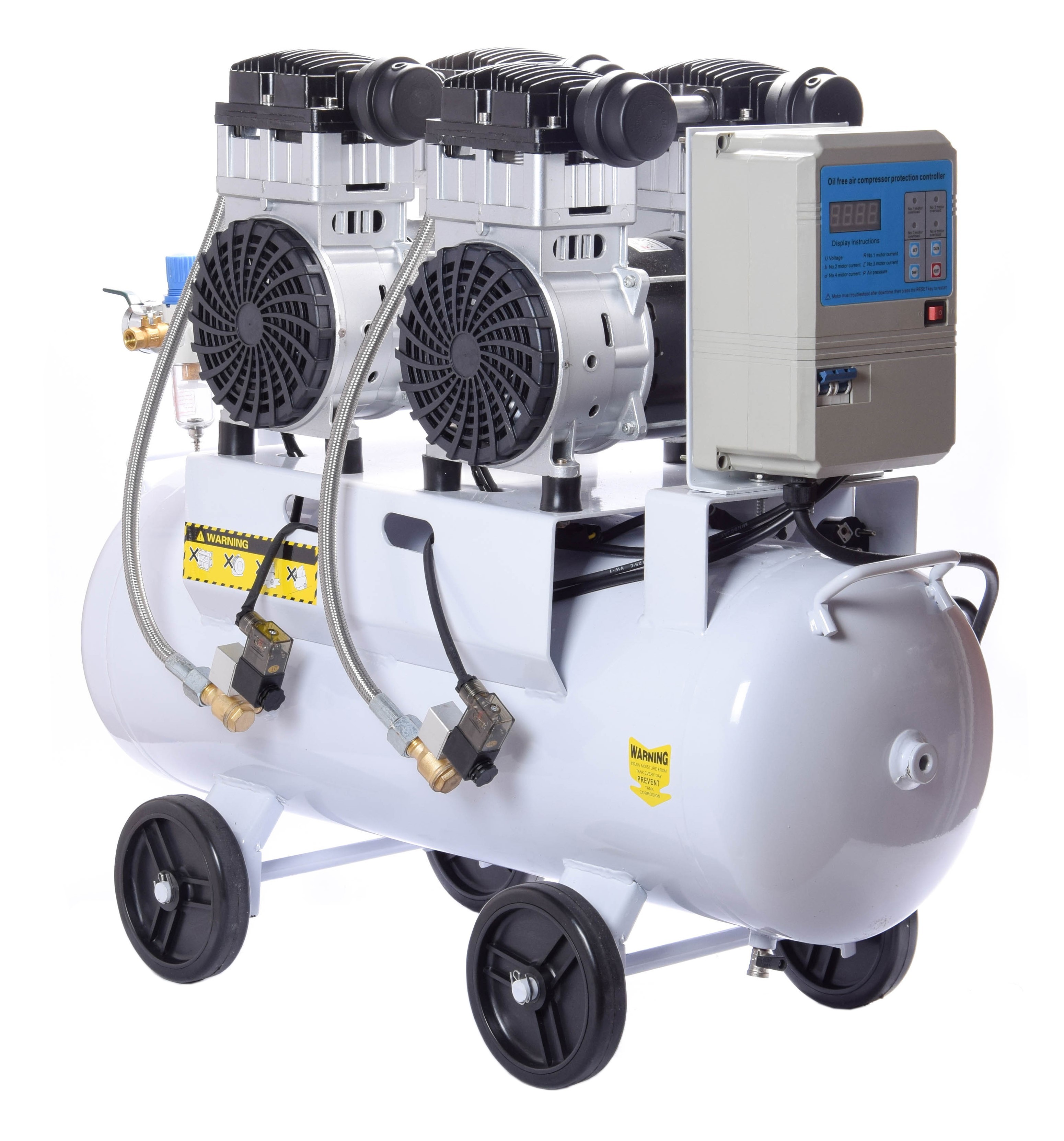 Kompresor MAGNUM to nowoczesne urządzenie wyposażone w dwie ciche a zarazem wydajne pompy bezolejowe. W sprężarce tej zamiast klasycznego wyłącznika ciśnieniowego zastosowano nowoczesny sterownik, odpowiadający za pracę pomp, dzięki czemu obniżono prąd rozruchu kompresora. Sprężarka przystosowana jest do pracy w laboratoriach, gabinetach medycznych, stomatologicznych i protetycznych: 50 litrowy zbiornik w połączeniu z pompami o łącznej mocy 3 kW pozwalają na zasilenie kilku stanowisk pracy.
