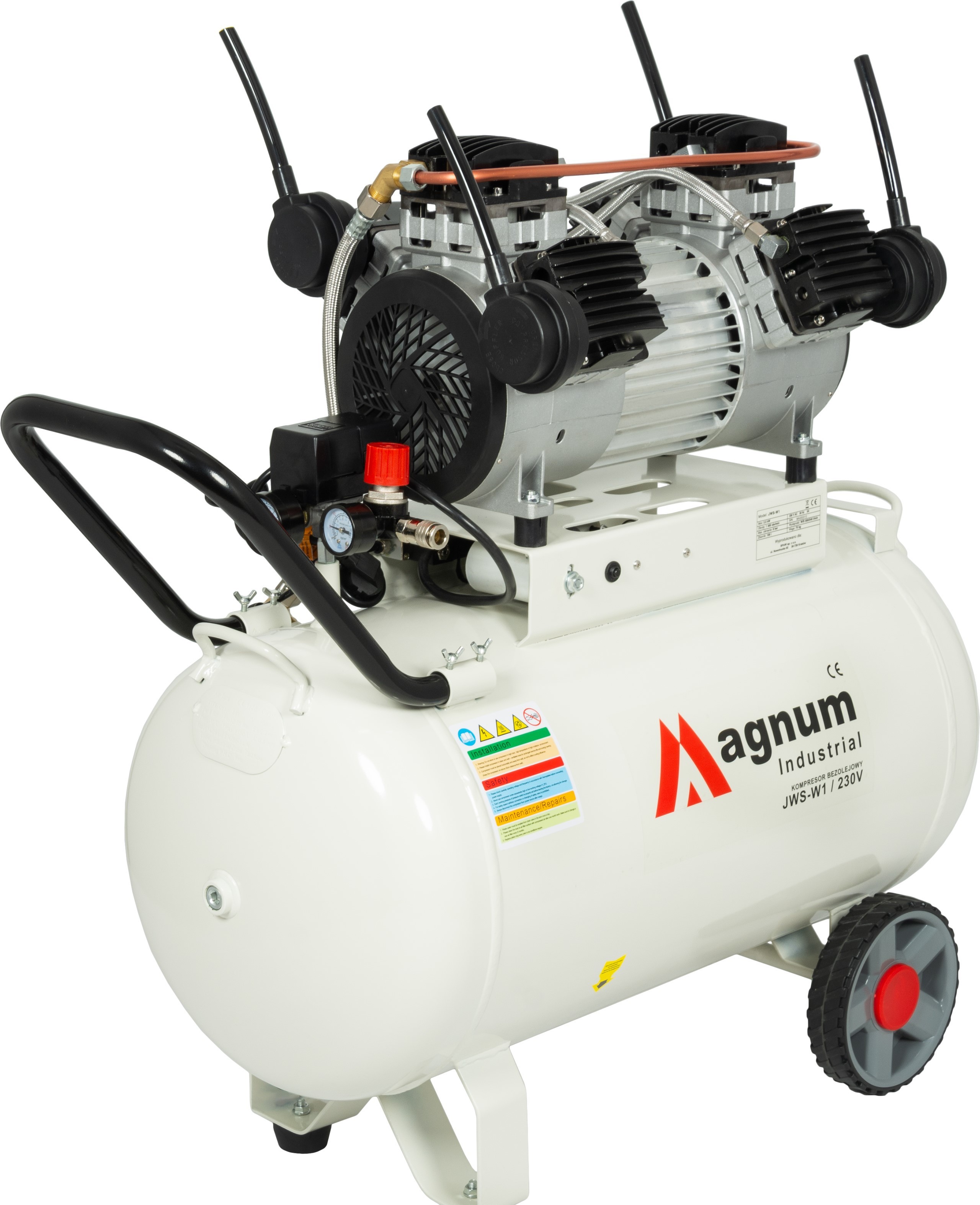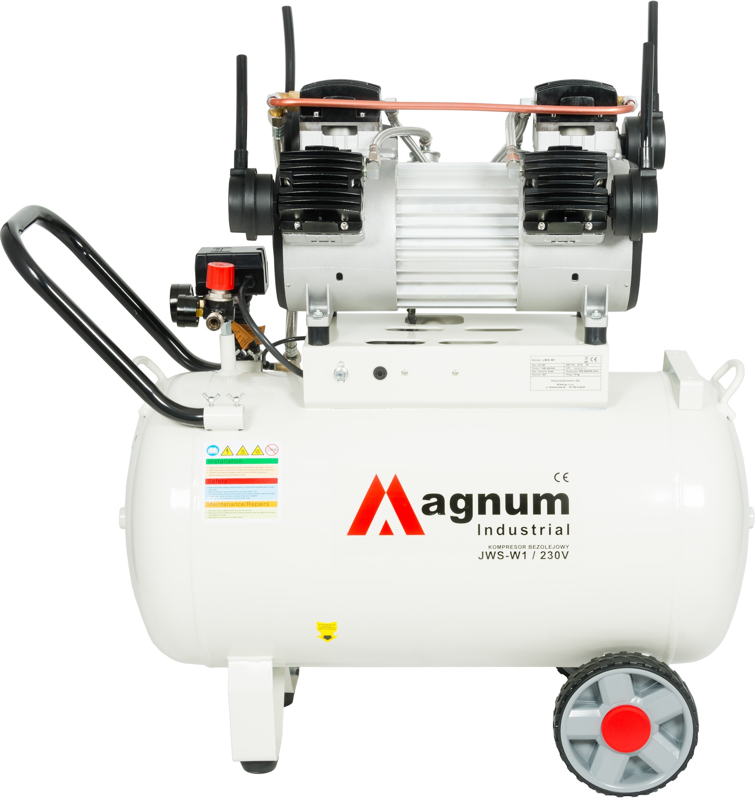 Profesjonalny kompresor marki MAGNUM, z wydajną bezolejową pompą. Nowość na polskim rynku - 6 tłokowa pompa w układzie W.