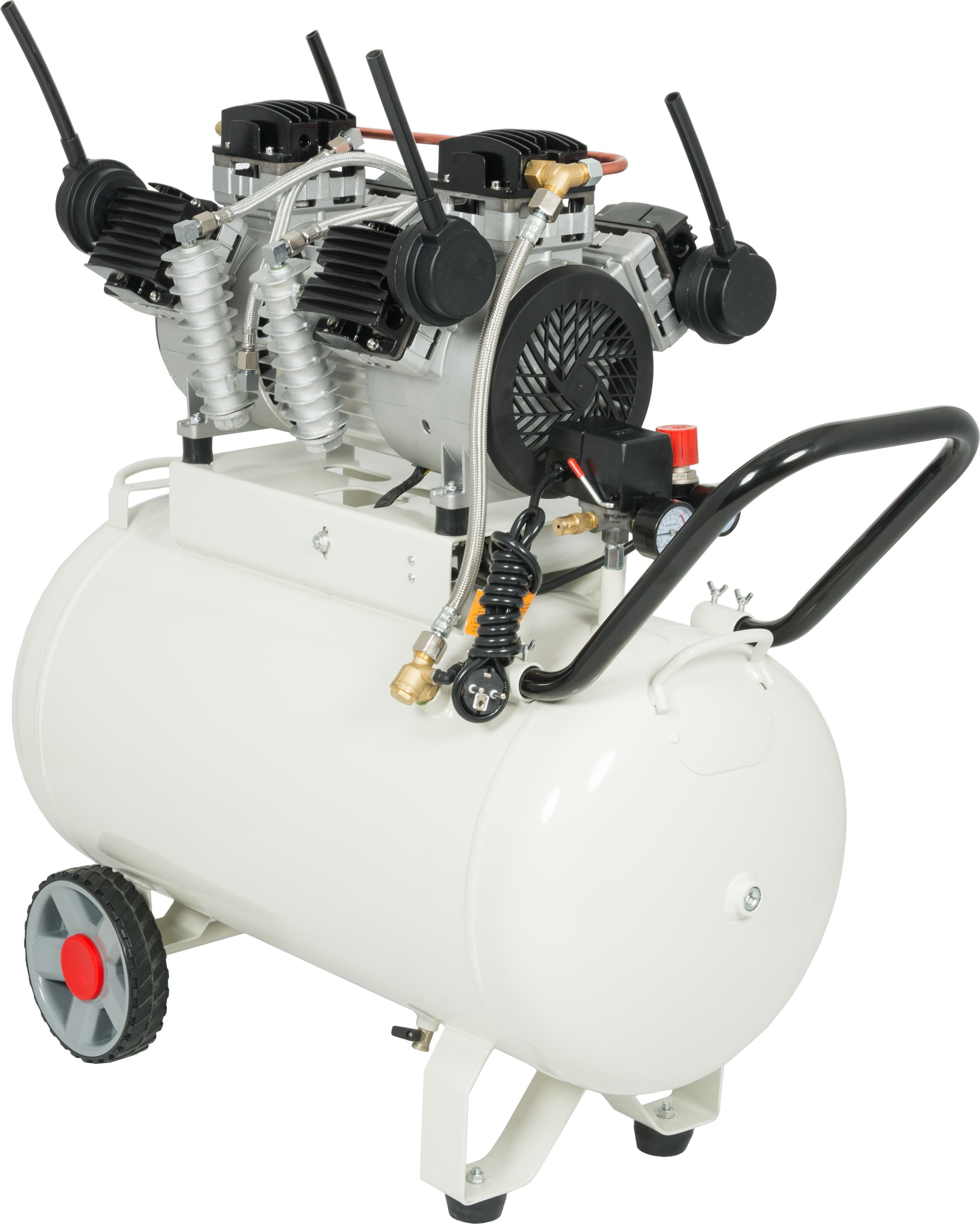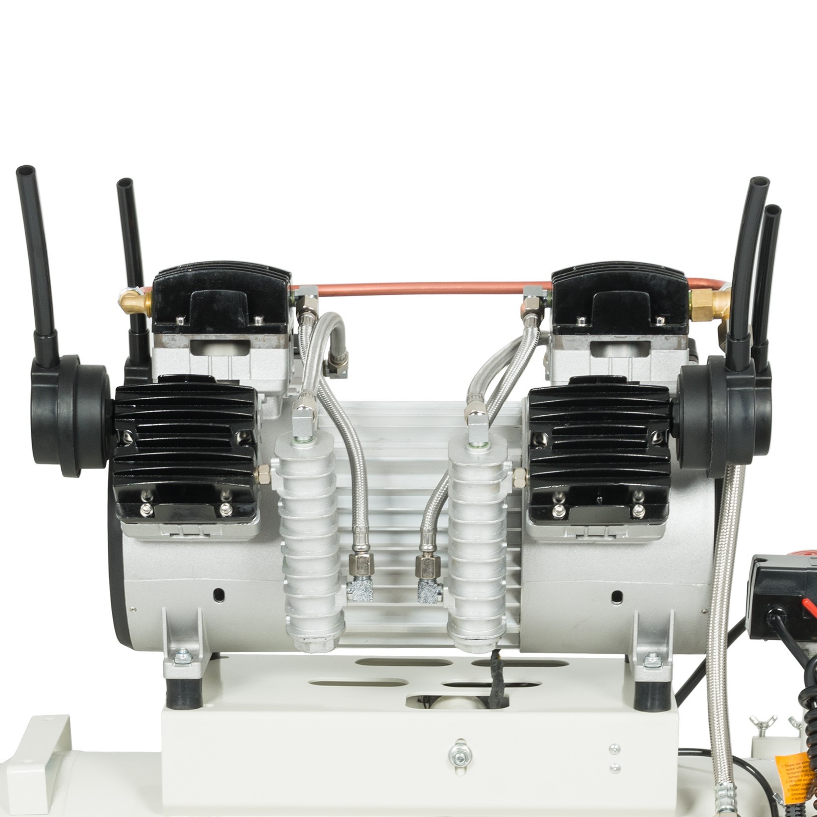 Bezolejowa pompa cechuje się cichą pracą - w porównaniu do sprężarek olejowych. Zastosowanie sześciu niezależnych tłoków (w tym dwóch tłoków odprężających) poprawiło chłodzenie pompy, a także znacznie podniosło sprawność, przez co kompresor cechuje się wysoką wydajnością przy stosunkowo niewielkim poborze mocy.