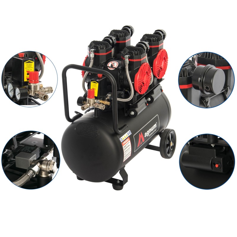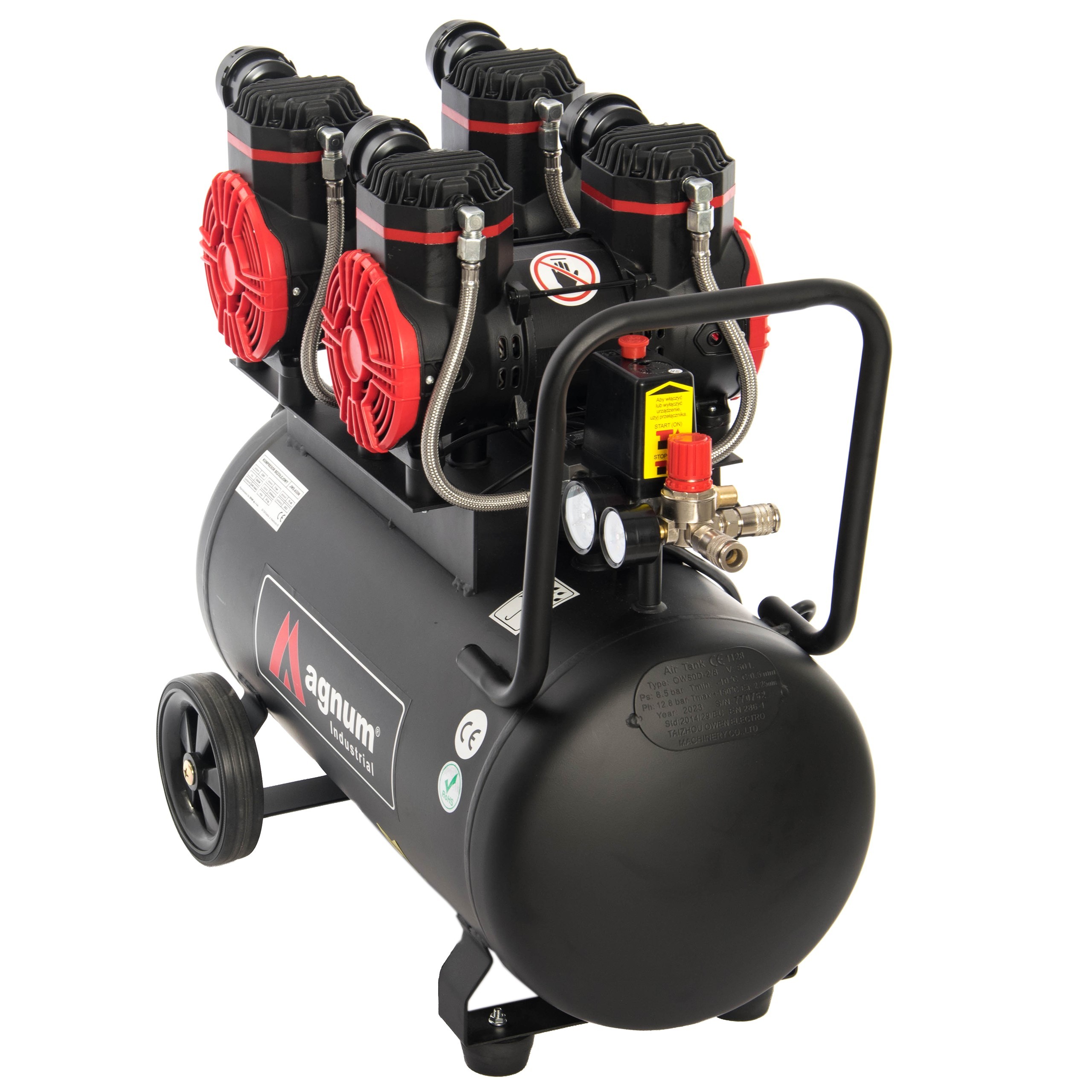 Profesjonalna, wyciszona sprężarka bezolejowa marki MAGNUM. Kompaktowe urządzenie wyposażone w mocny silnik elektryczny, trwałą pompę bezolejową przyjazną dla środowiska naturalnego oraz zbiornik pozwalający na gromadzenie powietrza pod wysokim ciśnieniem.