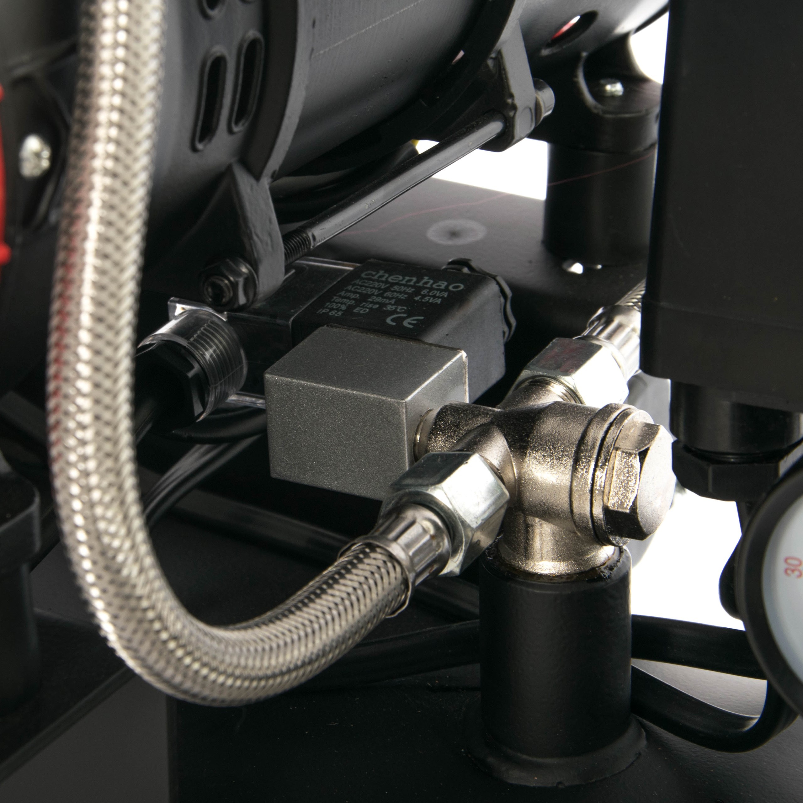 ✅ Kompresor wyposażony w przełącznik ciśnieniowy przeznaczony do utrzymywania ciśnienia w zbiorniku pomiędzy zadaną górną i dolną wartością ciśnienia. Sterownik wyposażony jest w zawór odciążający, którego zadaniem jest usunięcie ciśnienia z tłoków sprężarki tak, aby po ponownym uruchomieniu mogły się swobodnie poruszać i nie obciążać silnika. Dodatkowo zestaw został wyposażony w reduktor, manometry, zawór bezpieczeństwa oraz dwie szybkozłączki (typ 26). Dzięki czemu po podłączeniu kompresor gotów jest do pracy.