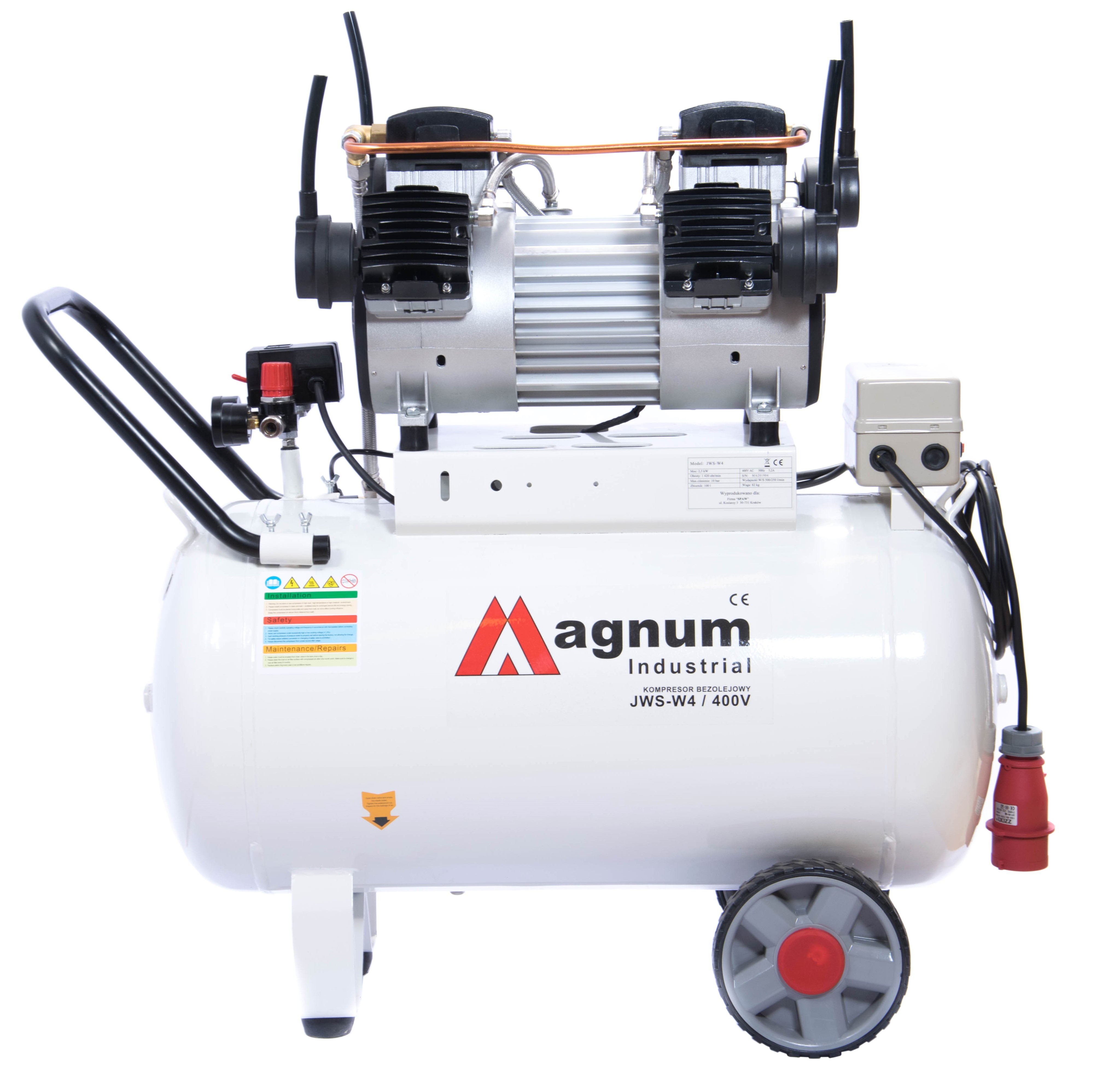 Kompresor MAGNUM JWS-W4 charakteryzuje się największą wydajnością w grupie sprężarek bezolejowych, jednocześnie pracując w wysokim zakresie ciśnień.