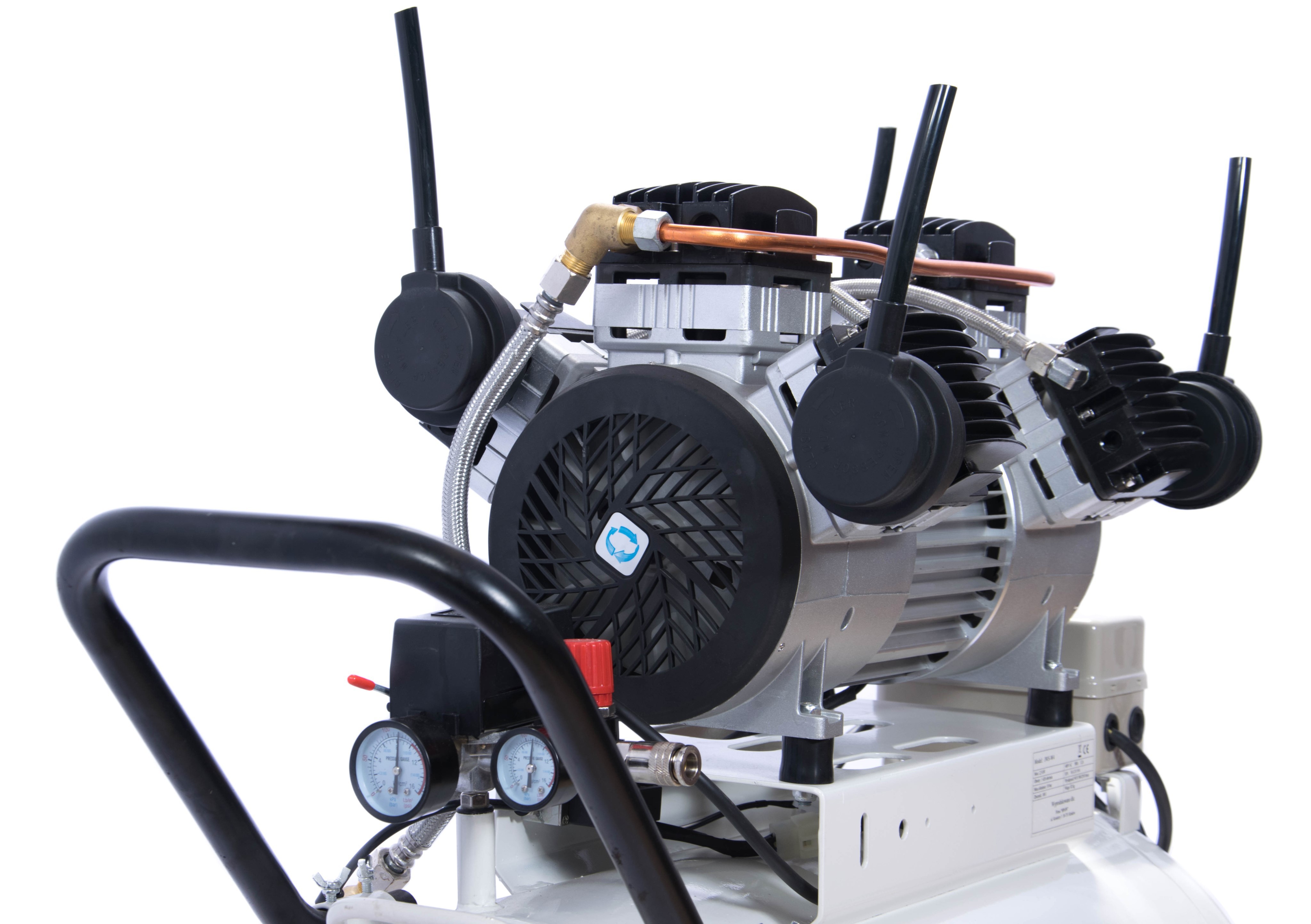 Profesjonalny kompresor marki MAGNUM, z wydajną bezolejową pompą. Innowacyjna sześciotłokowa, dwustopniowa pompa w układzie "W" zapewnia doskonałe parametry eksploatacyjne.