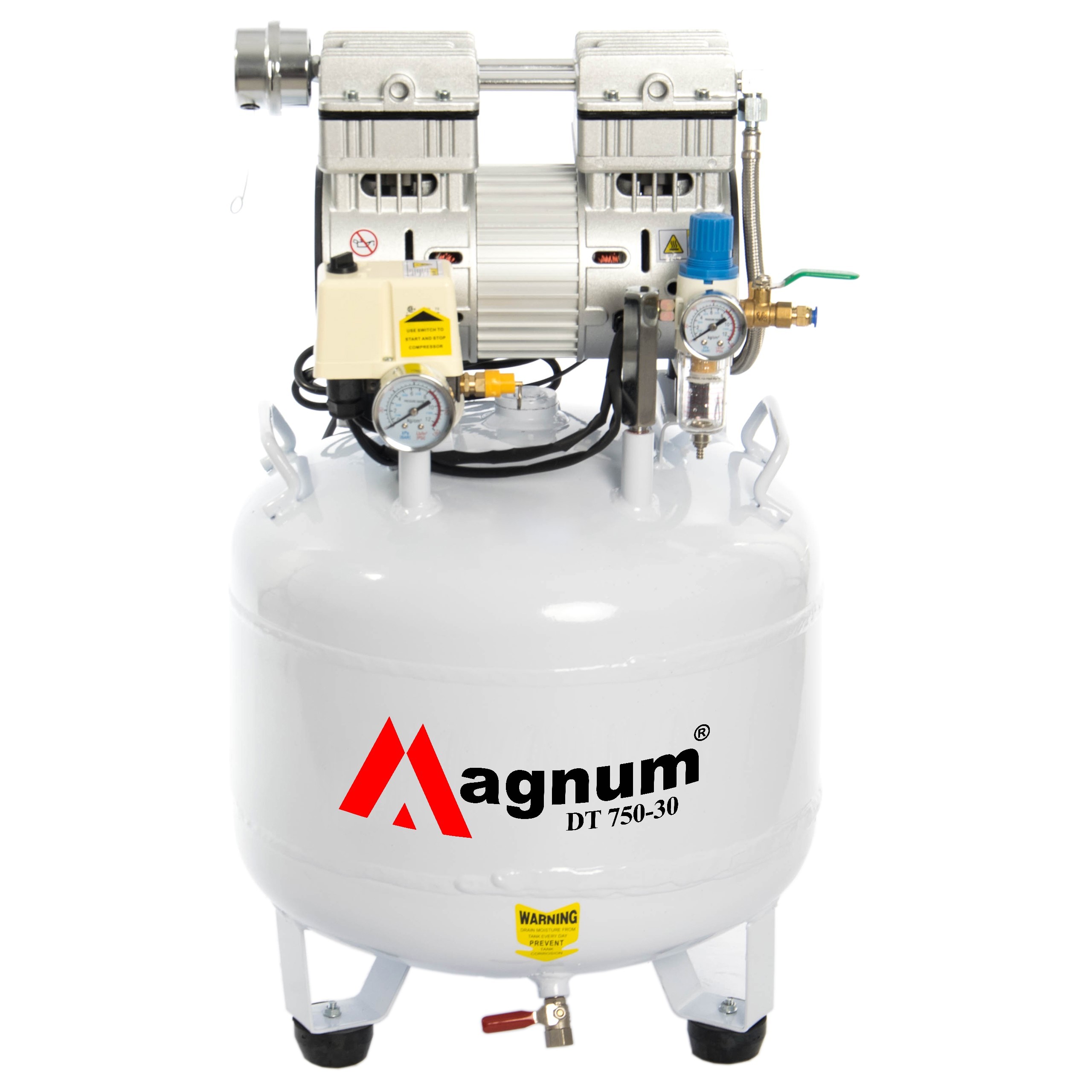 Profesjonalna, wyciszona sprężarka bezolejowa marki MAGNUM. Kompaktowe urządzenie wyposażone w trwałą pompę bezolejową - przyjazną dla środowiska naturalnego - oraz zbiornik emaliowany od wewnątrz pozwalający na gromadzenie powietrza pod wysokim ciśnieniem.