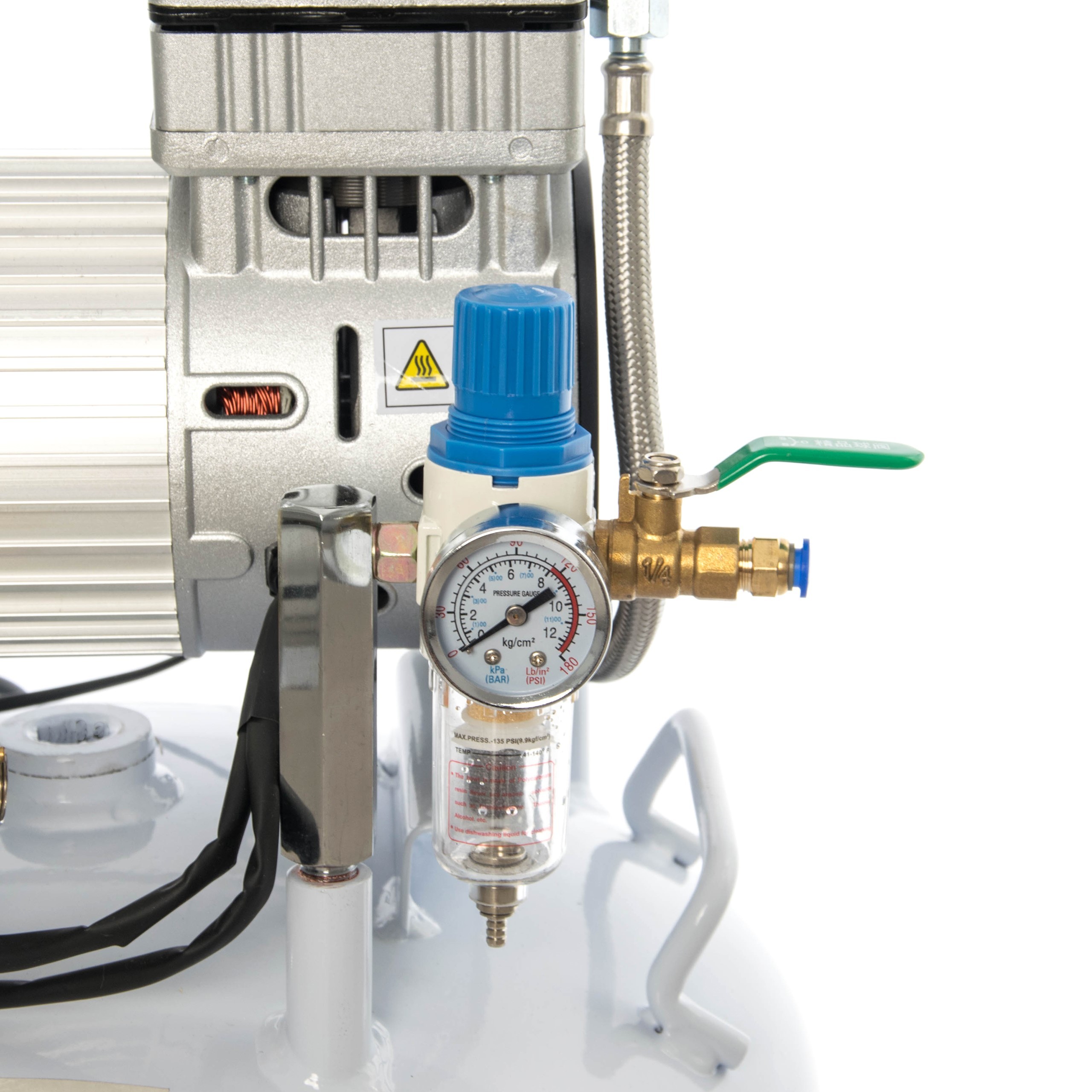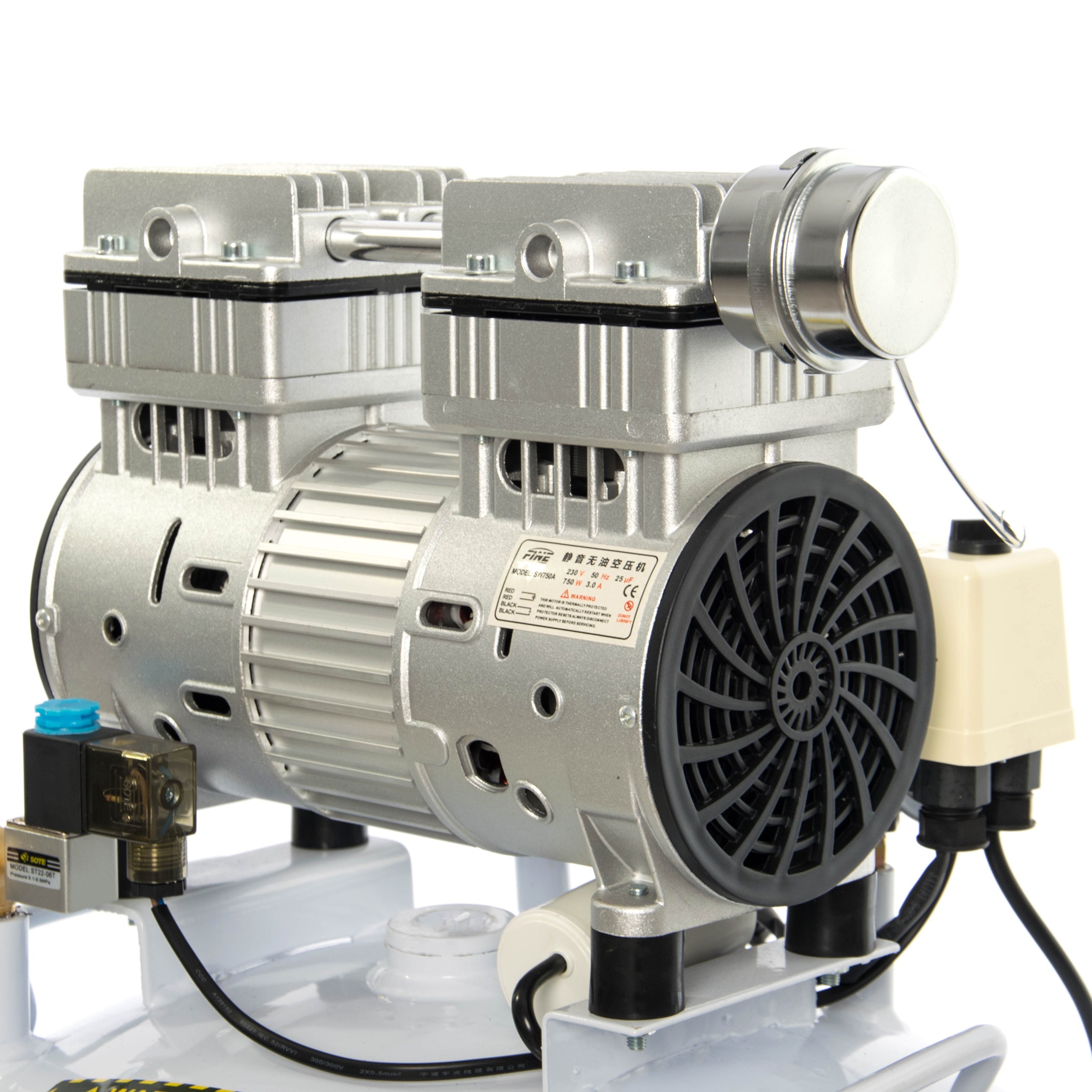 Wydajny i oszczędny w zużycie energii elektrycznej kompresor idealnie sprawdzi się w pracach w laboratoriach, gabinetach medycznych, stomatologicznych i protetycznych. Źródło sprężonego powietrza może posłużyć między innymi do pompowania, przedmuchiwania oraz zasilania urządzeń i narzędzi pneumatycznych.