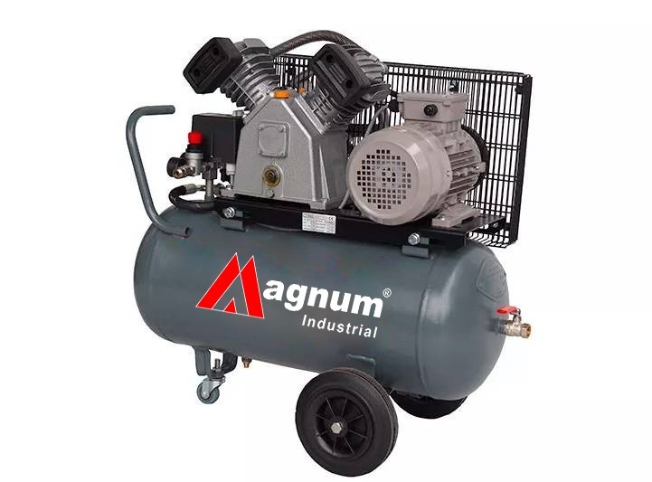 Przemysłowy kompresor tłokowy firmy MAGNUM stworzony na podzespołach renomowanych światowych producentów. Urządzenie certyfikowane zgodnie z normami europejskimi i z pełną dokumentacją niezbędną dla Urzędu Dozoru Technicznego. Dzięki wysokiej wydajności kompresor znajduje zastosowanie w zakładach przemysłowych, warsztatach samochodowych lub lakierniczych oraz wszędzie tam gdzie wymagane jest źródło sprężonego powietrza. Użycie napędu pasowego zapobiega przenoszeniu drgań z pompy na silnik oraz zwiększa kulturę pracy sprężarki.