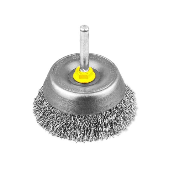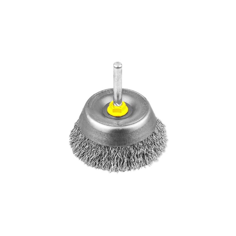 Szczotka doczołowa kwasoodporna FI 100 mm z trzpieniem 6 mm drut falowany