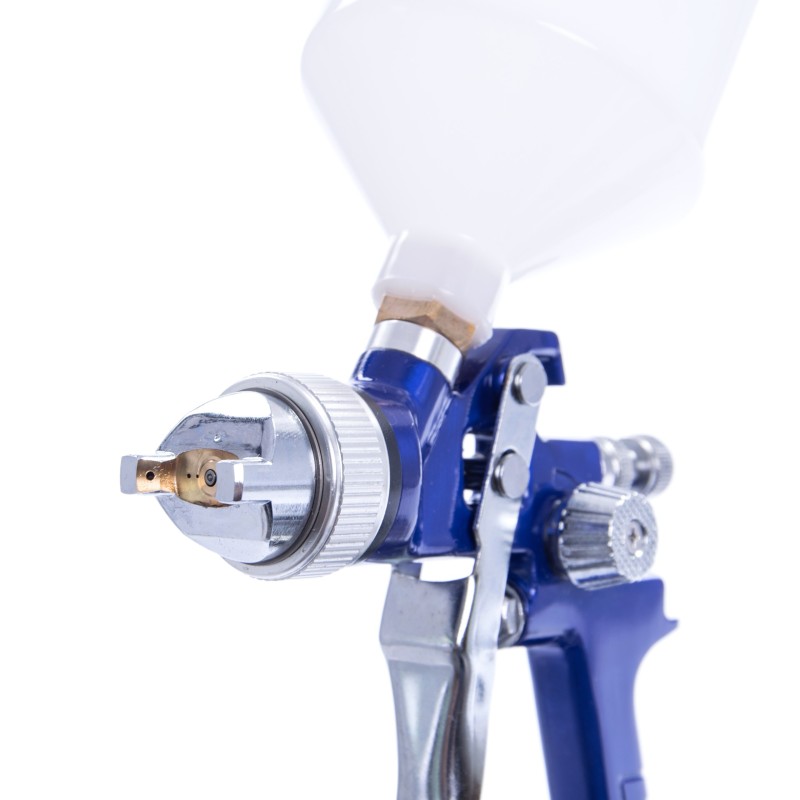 Wysokociśnieniowy pistolet lakierniczy marki AUARITA do malowania lakierami akrylowymi, wodorozcieńczalnymi, perłowymi itd. Dysza typu HP (High Pressure) wykonana ze stali nierdzewnej gwarantuje doskonałe rozpylenie farby, dzięki czemu położenie równomiernej powłoki nie stanowi problemu nawet dla amatora. Wysokie ciśnienie pracy pozwala na dokładne rozpylenie lakieru, co w połączeniu z dużą prędkością wylotową lakieru umożliwia szybkie i równomierne położenie warstwy. Jednocześnie pistolety wykonane w technologii HP charakteryzują się stosunkowo niewielkim zapotrzebowaniem na powietrze, dzięki czemu mogą współpracować nawet ze słabszymi kompresorami. Poczwórna regulacja, którą umożliwia pistolet pozwala na precyzyjne dobranie parametrów lakierowania. Regulacja ilości powietrza, ilości farby, kąta rozpylenia oraz kąta nakładania umożliwiają malowanie w różnych kierunkach zarówno dużych jak i małych elementów. W zestawie, oprócz pistoletu znajdują się również wtyk do szybkozłącza, klucze do rozkręcania, czyścik oraz filtr do zbiornika