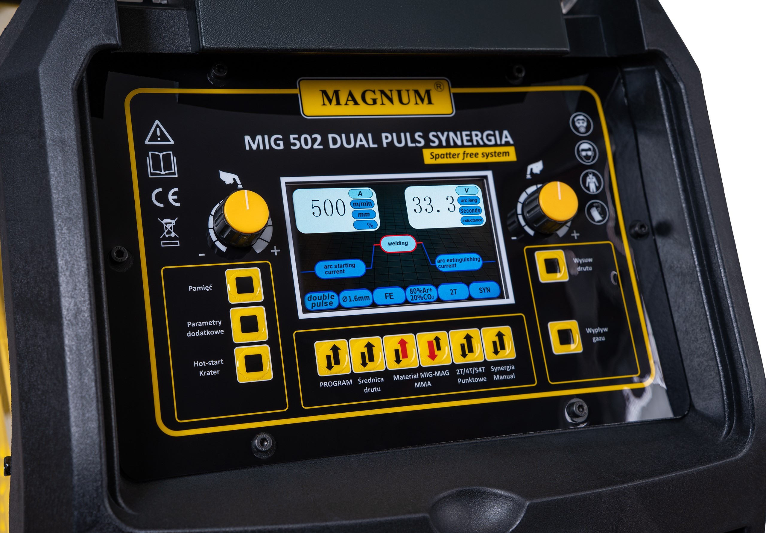 Półautomat inwerterowy Magnum MIG 502 DUAL PULS SYNERGIA LCD 500A/60%,
