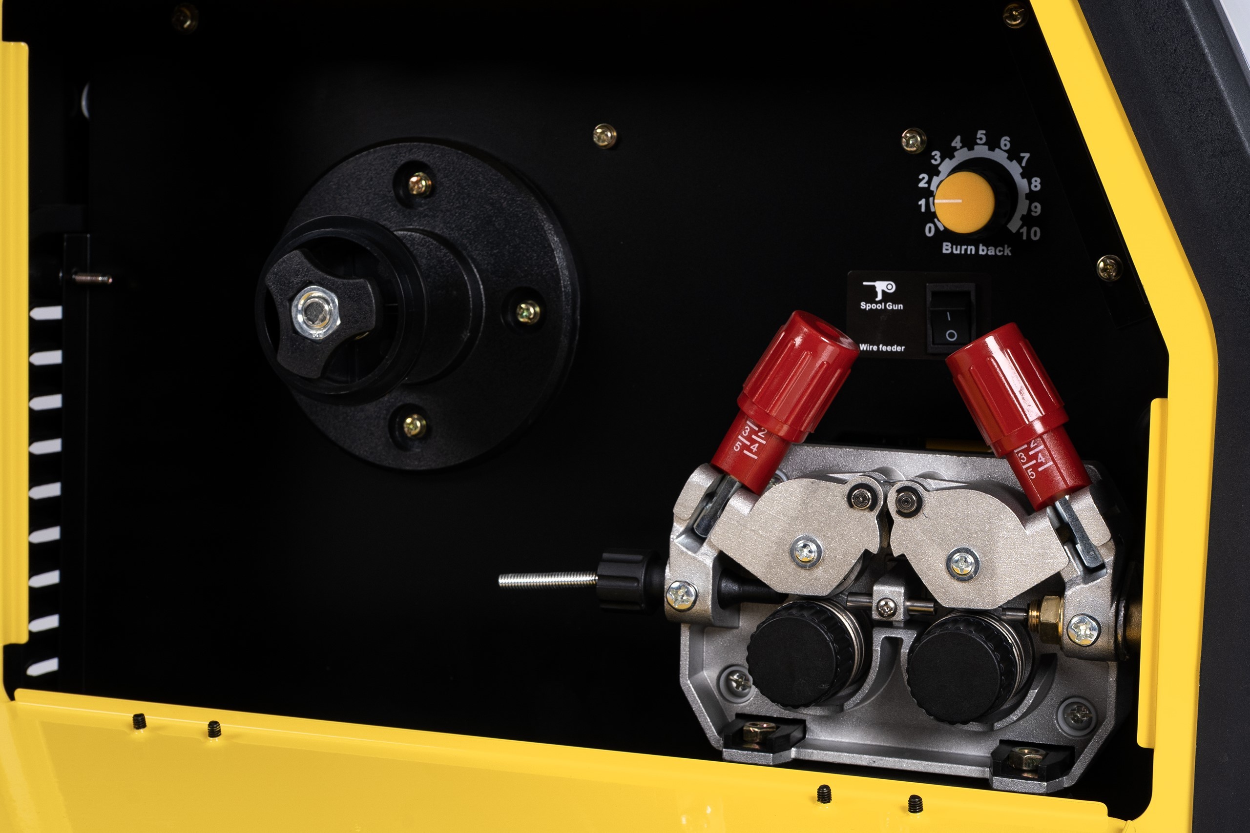 Zastosowany 4-rolkowy podajnik drutu (4x4) gwarantuje: