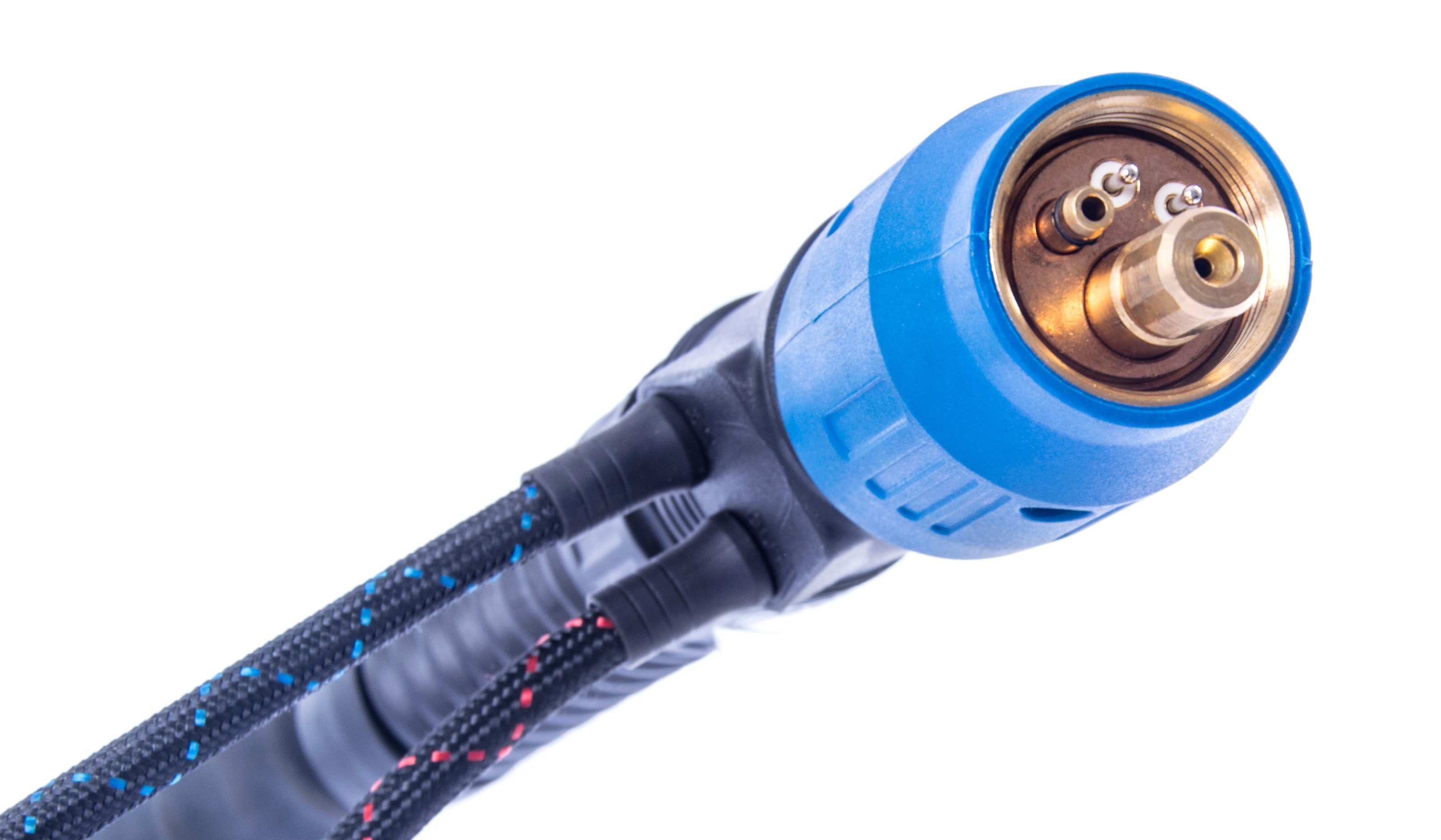 Uchwyt zakończony jest znormalizowanym przyłączem typu EURO, pasującym do większości półautomatów spawalniczych.