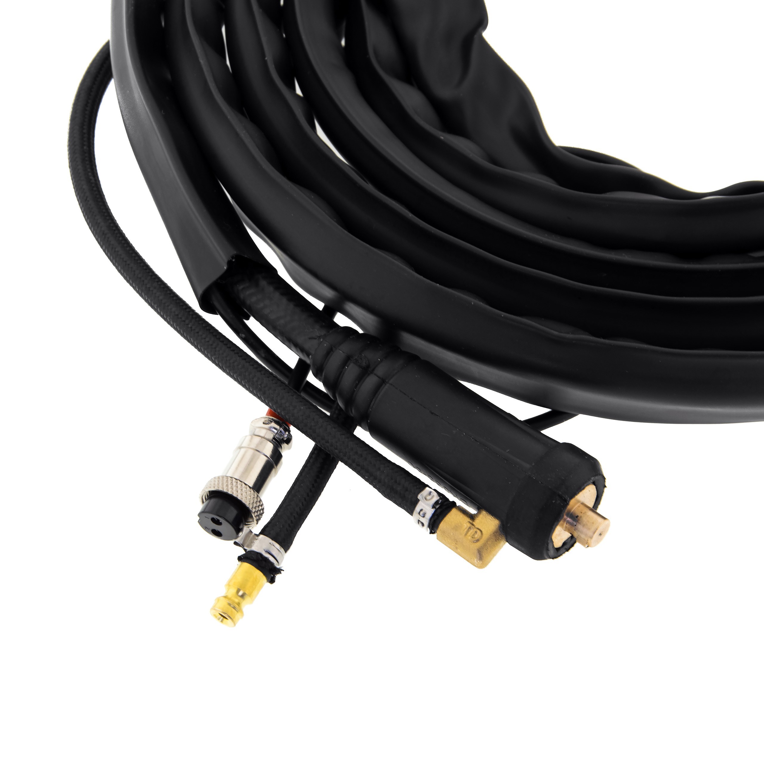 Rękojeść palnika posiada specjalnie gumowe wstawki, dzięki którym uchwyt leży pewnie w dłoni. Przewody zabezpieczone są odporną na przetarcia osłoną gumową.