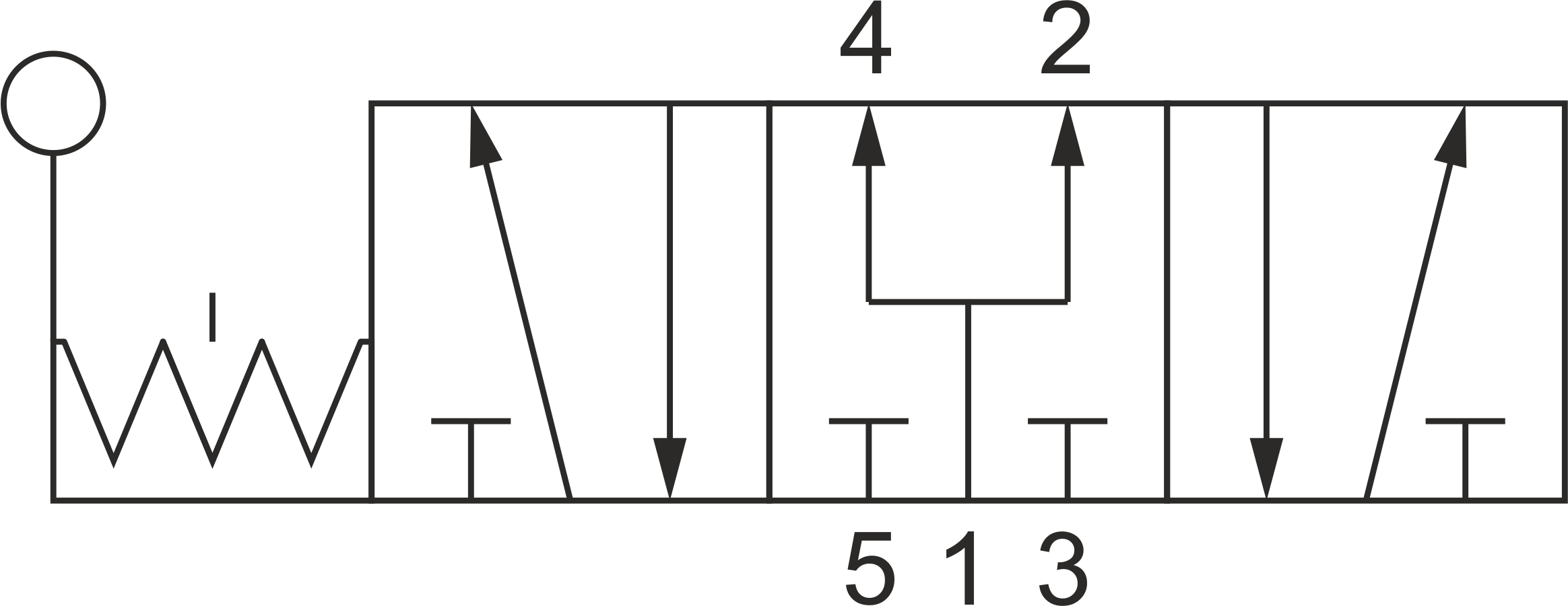 - Funkcja zaworu: 5/3 monostabilny centralnie napowietrzony