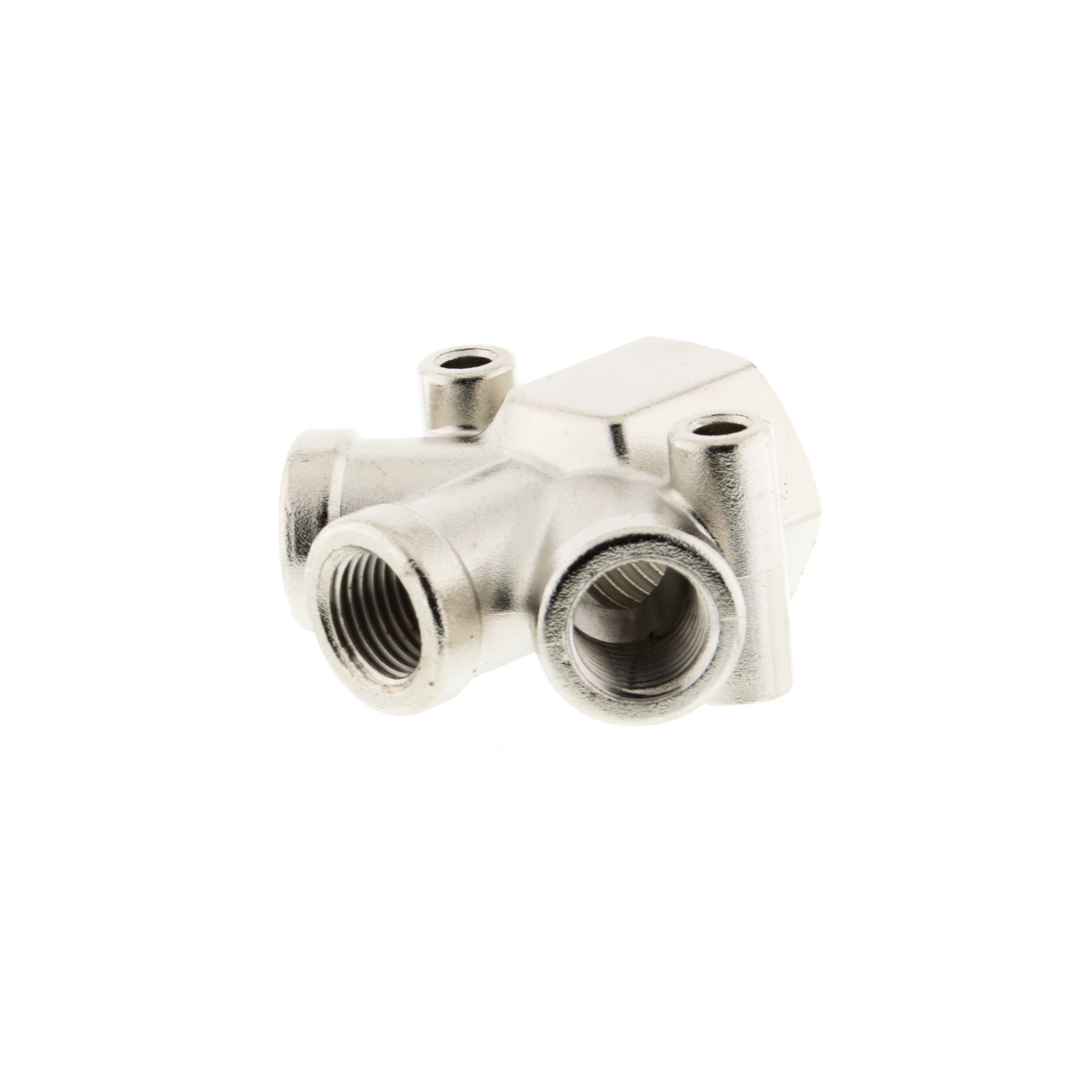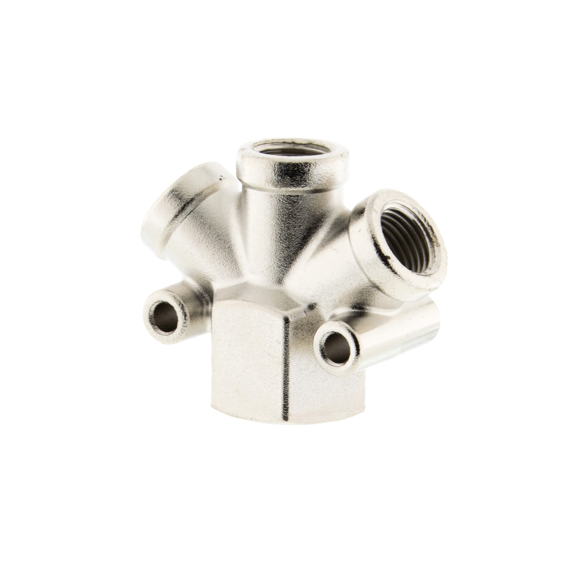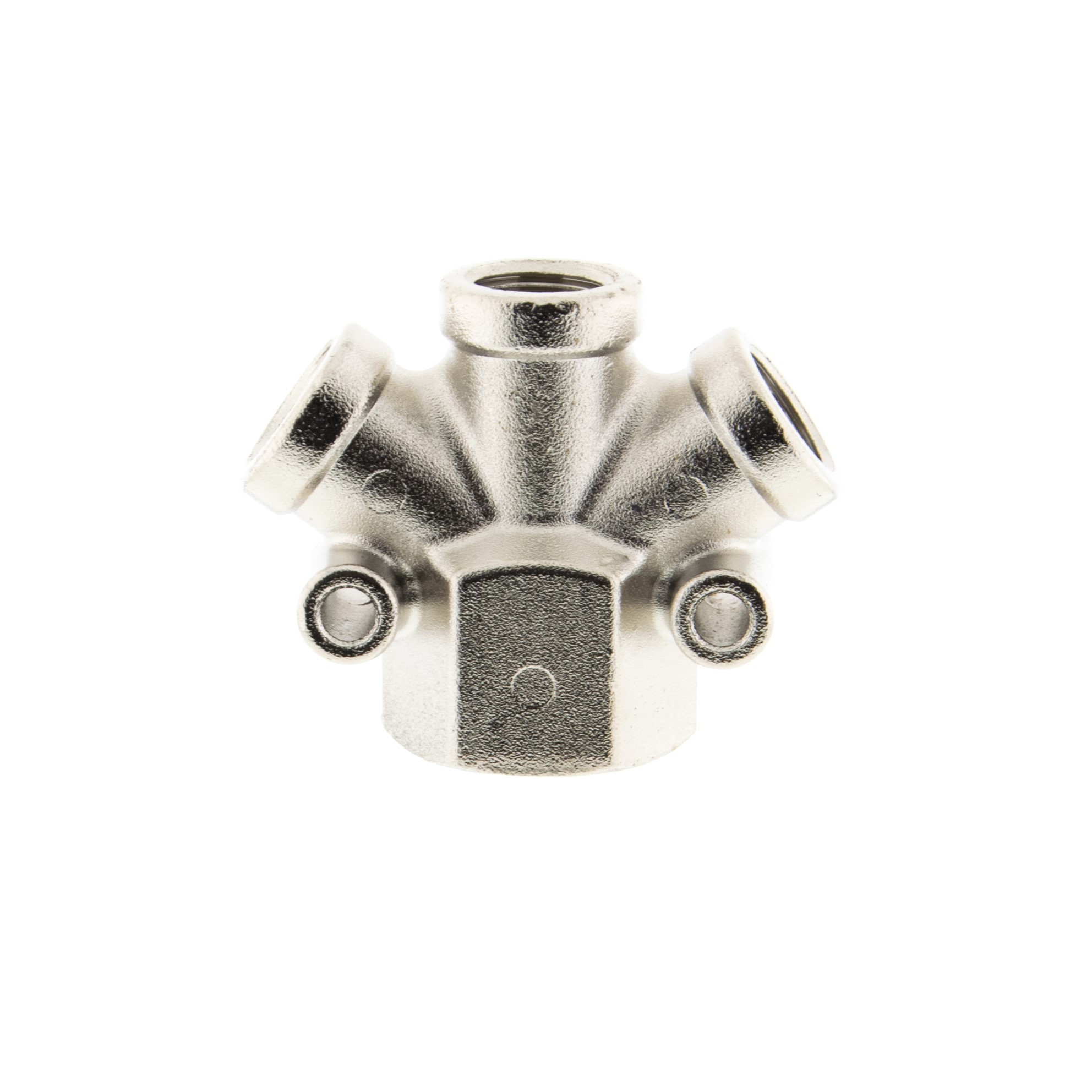 Czwórnik gwintowany naścienny z mosiądzu niklowanego umożliwia łączenie elementów instalacji pneumatycznych i hydraulicznych. Złączka cechuje się wysoką odpornością na działanie szkodliwych czynników takich jak wilgoć (wysoka odporność na korozję), oleje czy wysoka temperatura. Nadaje się do instalacji pneumatycznych, gazowych, wodnych i ciepłowniczych. Dodatkowy atutem złączki jest możliwość montażu naściennego.